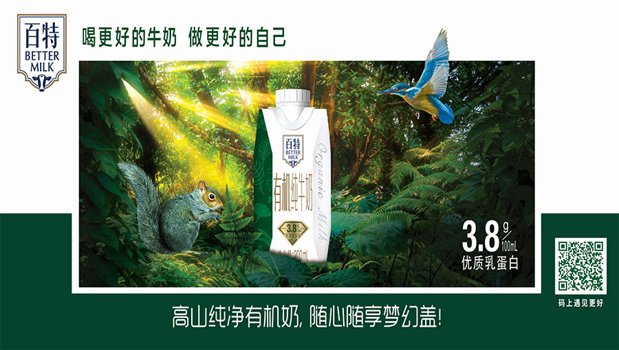 百特定位于專業(yè)健康功能路線的中高端牛奶,品牌價(jià)值主張“喝更好的牛奶,做更好的自己”。