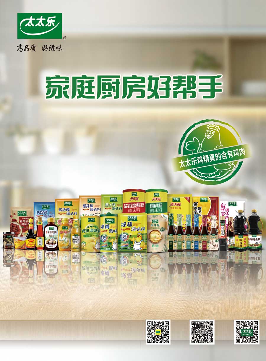 太太樂產(chǎn)品覆蓋固態(tài)復(fù)合風(fēng)味調(diào)味料和液態(tài)增鮮調(diào)味料兩大類的不同系列,多個子品牌,產(chǎn)品規(guī)格近300個品項。太太樂憑借雀巢體系的國際化管理體制、全球化質(zhì)量監(jiān)管體系、強大的研發(fā)實力和卓越的員工團隊,依托以餐飲、零售、電商、出口為主的四大銷售渠道,銷售網(wǎng)絡(luò)覆蓋全國各地,并出口至美國、加拿大、日本、中東等國家和地區(qū)。作為鮮味科學(xué)倡導(dǎo)者,太太樂以“讓十三億人嘗到更鮮美的滋味”為企業(yè)愿景,持續(xù)鮮味行業(yè)革新升級。