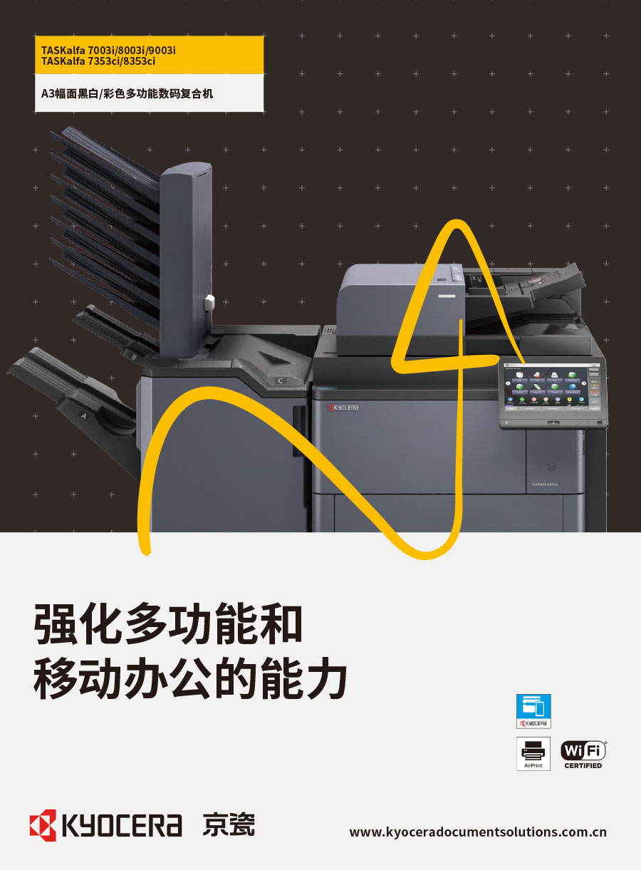 京瓷辦公信息系統(tǒng)(中國)有限公司主要負(fù)責(zé)彩色和黑白數(shù)碼復(fù)合機(jī)、彩色和黑白數(shù)碼激光打印機(jī)、生產(chǎn)型彩色噴墨印刷系統(tǒng)、辦公解決方案等系列辦公自動(dòng)化設(shè)備的銷售。京瓷辦公設(shè)備將一如既往延續(xù)ECOSYS理念,始終站在時(shí)代前沿,以科技服務(wù)社會(huì),堅(jiān)持開發(fā)更能滿足時(shí)代需求、更為綠色的新銳產(chǎn)品,使用戶都能夠從中獲得更大的利益。
