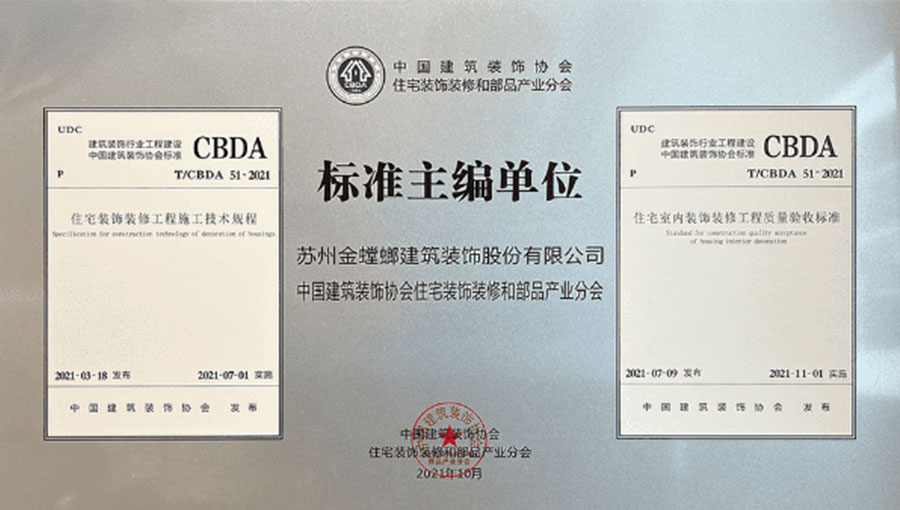 2021年,作為核心主編及實施單位參與了CBDA《住宅裝飾裝修工程施工技術規(guī)程》和CBDA《住宅室內(nèi)裝飾裝修工程施工質量驗收標準》的制訂工作,以高標準嚴要求完成住宅裝飾行業(yè)第一部規(guī)范標準制定。