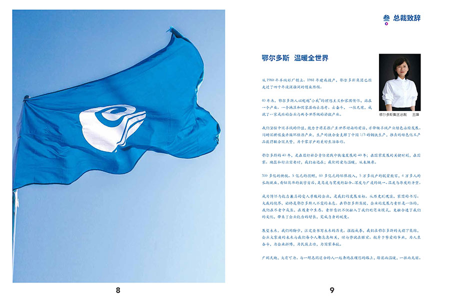 鄂爾多斯集團(tuán)擁有成員企業(yè)100 多家,員工4 萬(wàn)余人,羊絨產(chǎn)業(yè)和循環(huán)經(jīng)濟(jì)產(chǎn)業(yè)兩大產(chǎn)業(yè)板塊,以及1436、ERDOS、鄂爾多斯1980、BLUE ERDOS、erdos KIDS 5個(gè)知名服裝品牌組成的品牌家族。站在新的發(fā)展起點(diǎn)上,鄂爾多斯集團(tuán)將繼續(xù)以“立民族志氣,創(chuàng)世界名牌”為使命,遵循“科技綠色、循環(huán)發(fā)展”的經(jīng)營(yíng)主線,繼續(xù)發(fā)揚(yáng)奮發(fā)有為、事在人為的創(chuàng)業(yè)精神,以更加雄厚的經(jīng)濟(jì)實(shí)力,更加堅(jiān)定的發(fā)展步伐、更加高遠(yuǎn)的戰(zhàn)略構(gòu)想,建設(shè)具有國(guó)際競(jìng)爭(zhēng)力的幸福企業(yè),實(shí)現(xiàn)“溫暖全世界”的宏偉目標(biāo)。