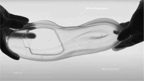 “氮?dú)獬R界物理發(fā)泡、一體成型,讓運(yùn)動(dòng)選手上場(chǎng)就能爆出好料”——這是安踏氮科技帶來(lái)的直觀表現(xiàn)!現(xiàn)場(chǎng),安踏品牌鞋創(chuàng)新管理中心高級(jí)總監(jiān)蔡之本解讀了“動(dòng)創(chuàng)未來(lái)”這一主題,同時(shí)他還列舉了一組數(shù)據(jù)——氮科技加持下的材料實(shí)現(xiàn)能量回歸率高達(dá)86.8%,材料密度僅為0.09g/cm³,耐久性方面提升30%,綜合性能表現(xiàn)遠(yuǎn)高于同行。