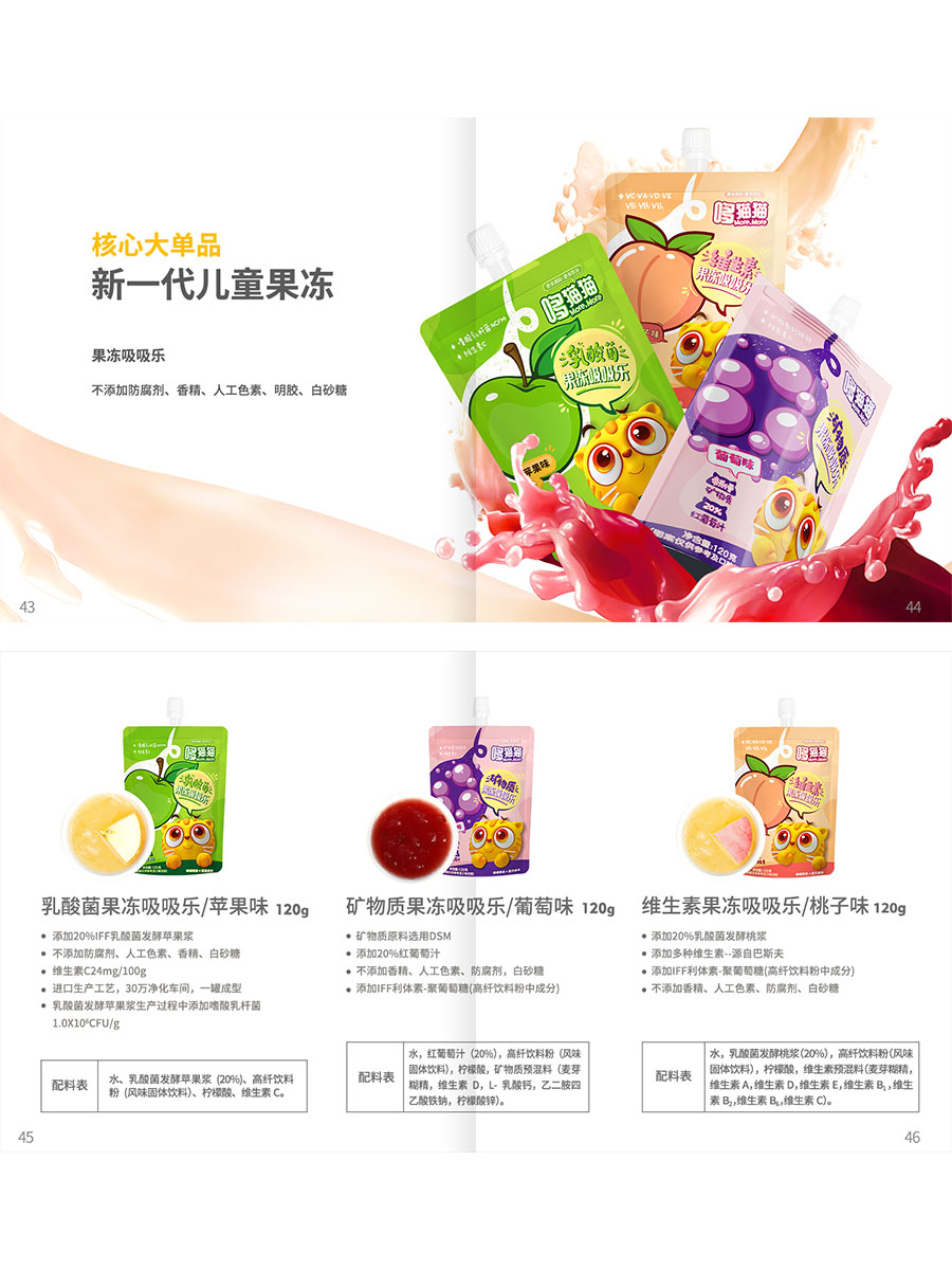 主要產(chǎn)品:哆貓貓乳酸菌果汁飲料、兒童果凍吸吸樂、兒童奶巧、嬰幼兒標(biāo)準(zhǔn)類產(chǎn)品