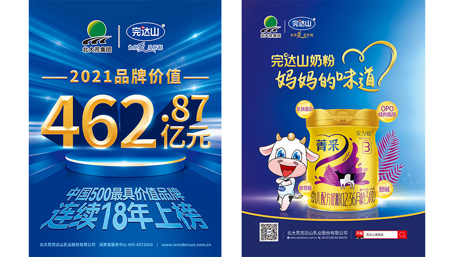 北大荒完達山乳業(yè)股份有限公司是伴隨著1958年王震將軍開發(fā)建設(shè)北大荒而誕生的,資產(chǎn)總額36億元,北大荒完達山現(xiàn)有員工1.2萬人,下轄20家分、子公司,年加工能力100余萬噸,擁有菁采、元乳、諸葛小將、黑沃等明星產(chǎn)品,銷售網(wǎng)絡(luò)遍及全國。2021年,品牌價值達462.87億元。七十年代,完達山首創(chuàng)大顆粒速溶奶粉制造工藝,從此使我國進入速溶時代;八十年代,完達山4次蟬聯(lián)國家食品質(zhì)量最高獎——國家銀質(zhì)獎?wù)隆H槠沸袠I(yè)唯一的“中國綠色食品榮譽企業(yè)”,全國誠信體系建設(shè)首批首家乳制品試點評價通過單位,全國農(nóng)業(yè)產(chǎn)業(yè)化重點龍頭企業(yè)。