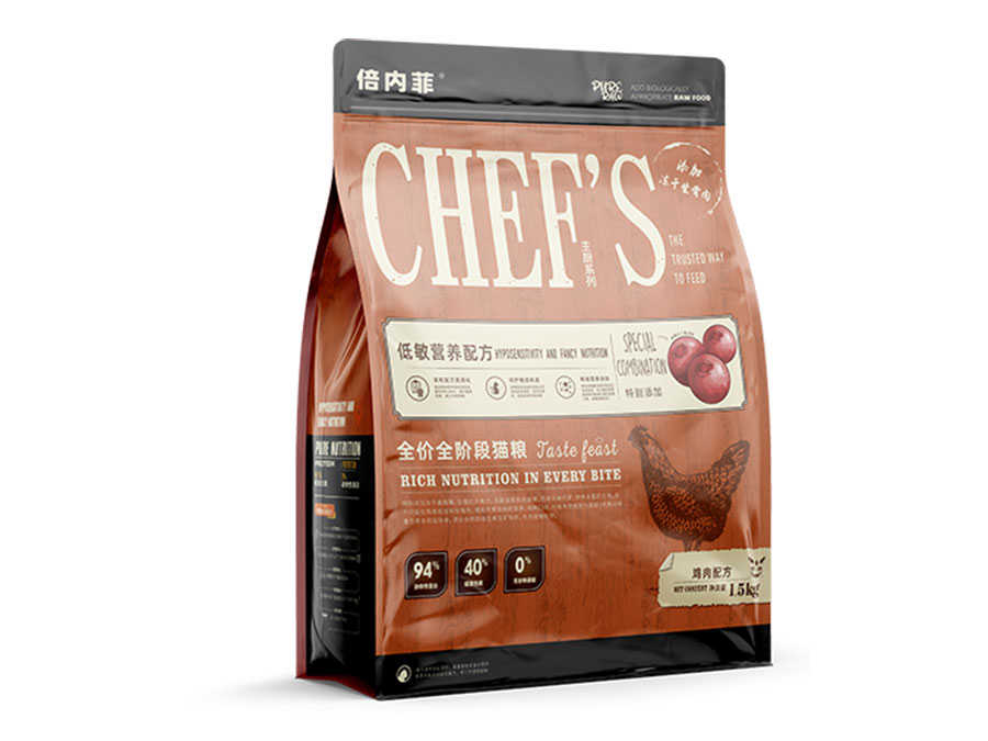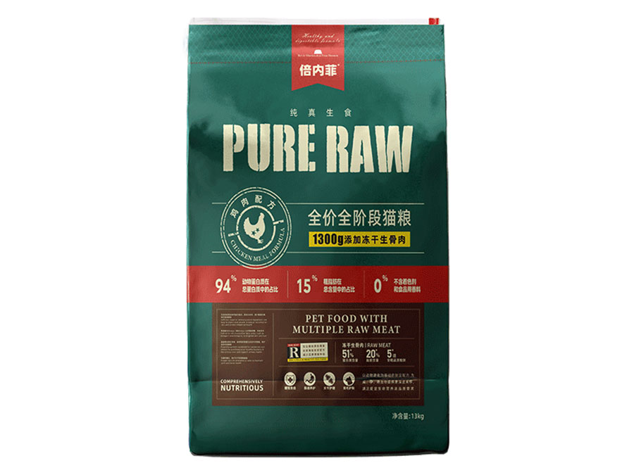倍內(nèi)菲產(chǎn)品含有高含量的動(dòng)物性蛋白以及盡可能少的碳水化合物,所以選擇純真生鮮飲食的方式,用高蛋白主糧顆粒大搭配鮮肉凍干、生骨肉,用科學(xué)、安全、天然、營(yíng)養(yǎng)、健康的飲食,讓寵物回歸自然天性。