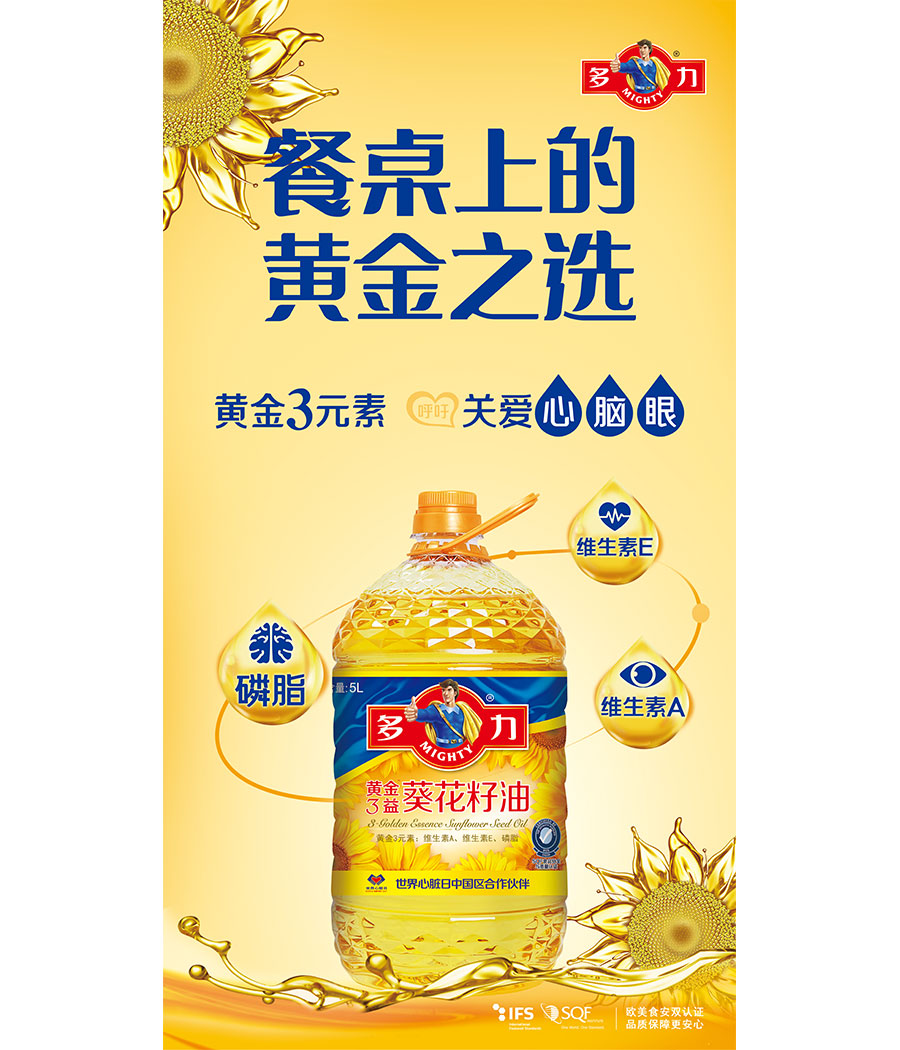 佳格集團(tuán)以健康營(yíng)養(yǎng)的“多力”葵花籽油為起點(diǎn)切入食用油市場(chǎng),深耕市場(chǎng)20年后,佳格已擁有現(xiàn)代化的研發(fā)中心、支持全國(guó)的內(nèi)蒙、太倉(cāng)及廈門三大生產(chǎn)基地,以及遍布各地的業(yè)務(wù)網(wǎng)點(diǎn)。截至目前,“多力”食用油系列涵蓋葵花籽油、菜籽油、壓榨玉米油等多款產(chǎn)品,以其獨(dú)有的7重精煉技術(shù)、享譽(yù)國(guó)際的品質(zhì)標(biāo)準(zhǔn)以及倡導(dǎo)國(guó)人健康的品牌理念,深得廣大消費(fèi)者信賴并成為中國(guó)食用油市場(chǎng)領(lǐng)導(dǎo)品牌。