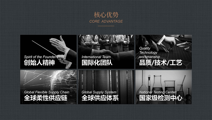 大楊集團(tuán)堅(jiān)持做民族品牌,揚(yáng)國人志氣,致力打造國際一流服裝品牌。上世紀(jì)90年代創(chuàng)立了第一個(gè)自主品牌——TRANDS(創(chuàng)世),先后榮獲“中國出口名牌”、“中國名牌產(chǎn)品”等稱號,并獲得中國服裝協(xié)會頒發(fā)的中國服裝品牌品質(zhì)大獎,成為當(dāng)今中國高級男裝的領(lǐng)軍品牌之一。TRANDS(創(chuàng)世)品牌申報(bào)國家非遺創(chuàng)新產(chǎn)品的“‘龍’金絲蘇繡中式華服”被授予十大類紡織創(chuàng)新產(chǎn)品。“股神”沃倫·巴菲特、微軟主席比爾·蓋茨、世界經(jīng)濟(jì)論壇主席克勞斯·施瓦布等國際精英人士,均已成為品牌的忠實(shí)客戶。目前,大楊集團(tuán)已形成以高級男裝品牌TRANDS(創(chuàng)世)為龍頭,團(tuán)體定制高級商務(wù)裝品牌KEYMEN(凱門)、高級定制品牌凱門定制、網(wǎng)上直銷品牌YOUSOKU(優(yōu)·搜·酷)、學(xué)生裝品牌KEYMEN KIDS等組成的自主品牌梯隊(duì)。