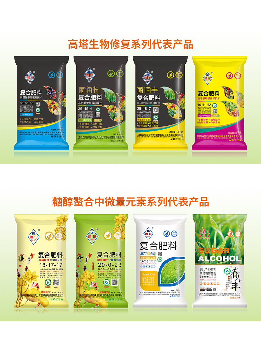主要產(chǎn)品:魯化好陽光復合肥料、摻混肥料、復合肽硫氮素、水溶肥系列、多肽尿素等產(chǎn)品