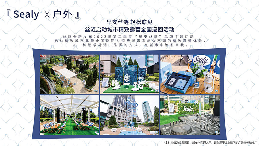 絲漣全新發(fā)布2023年第二季度“早安絲漣”品牌主題活動(dòng),啟動(dòng)精致城市露營全國巡回為消費(fèi)者帶來與眾不同的精致露營體驗(yàn),以一種追求舒適、品質(zhì)的方式,在城市中治愈自我。