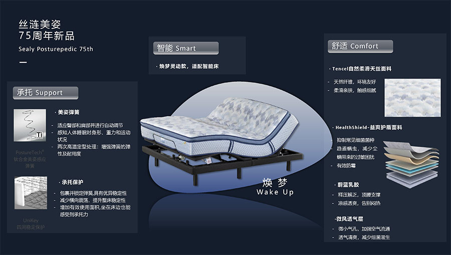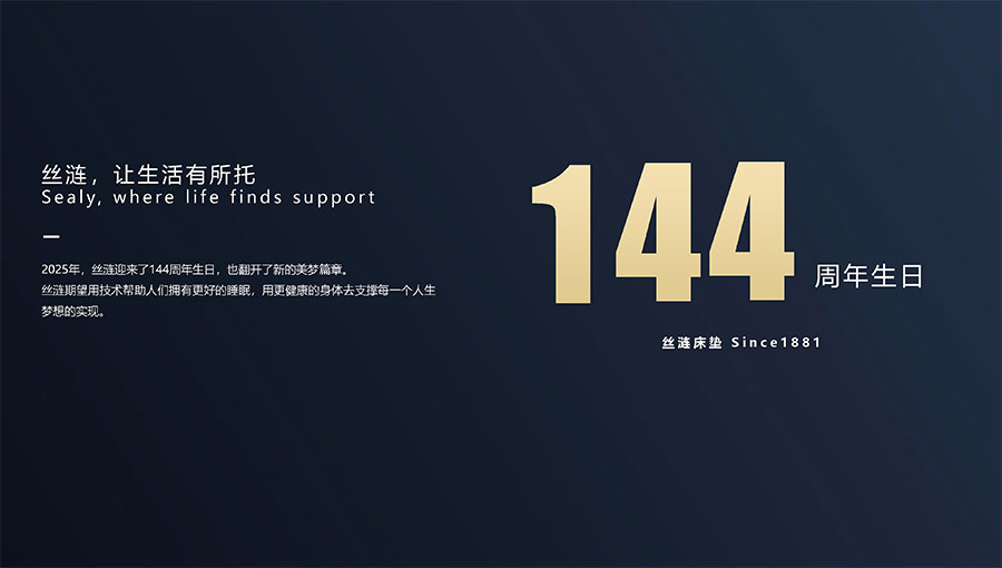 絲漣SEALY1881年誕生于美國,自1885年第一張絲漣床墊問世伊始,便憑借其卓越性能與舒適安睡體驗(yàn)聲名大噪。1950年,絲漣開創(chuàng)床墊與醫(yī)學(xué)權(quán)威共研的先河,絲漣美姿以科學(xué)的脊柱支撐理念徹底重塑了床墊行業(yè)。75年來,持續(xù)的技術(shù)升級(jí)和創(chuàng)新使得美姿彈簧不斷進(jìn)化,只為打造更加舒適健康的睡眠體驗(yàn)。