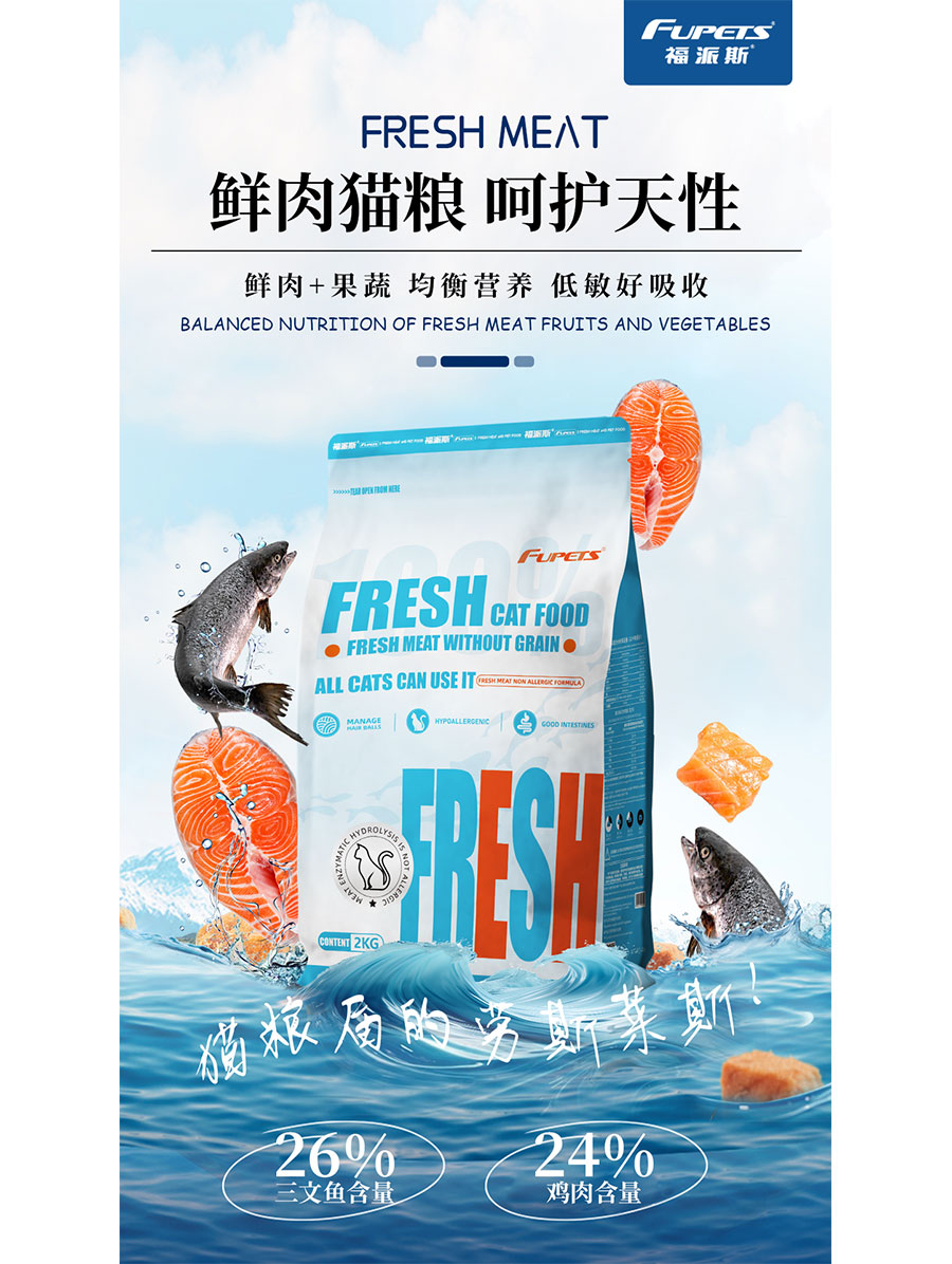 主要產(chǎn)品:福派斯FUPETS鮮肉無谷犬貓糧、無麩質(zhì)低敏貓糧和犬貓罐頭、零食