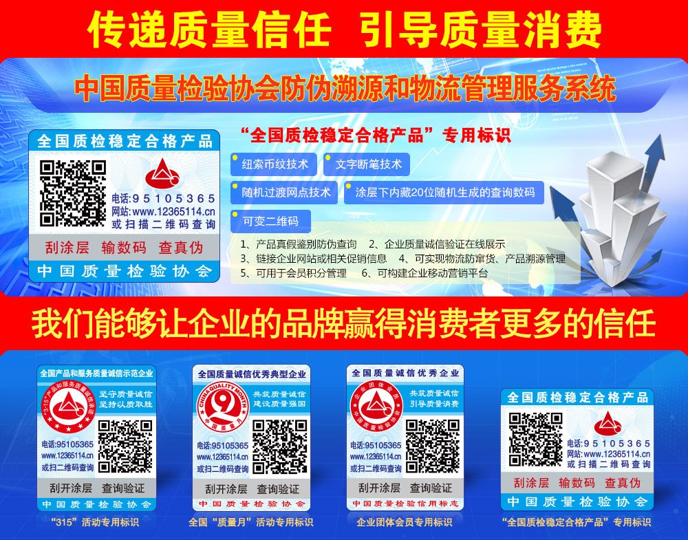 中國質(zhì)量檢驗(yàn)協(xié)會(huì)防偽溯源和物流管理服務(wù)系統(tǒng)(簡稱中檢聯(lián)合質(zhì)量誠信驗(yàn)證系統(tǒng))是以物聯(lián)網(wǎng)、大數(shù)據(jù)、云計(jì)算、區(qū)塊鏈和移動(dòng)互聯(lián)網(wǎng)技術(shù)為基礎(chǔ)建設(shè)的全過程防偽溯源與質(zhì)量誠信驗(yàn)證服務(wù)平臺(tái),依托廣大技術(shù)機(jī)構(gòu)的技術(shù)支撐,應(yīng)用二維碼為載體,使用一物一碼防偽技術(shù),同時(shí)采用文字、圖片和視頻等多媒體方式,完整記錄產(chǎn)品的原料來源、生產(chǎn)加工、倉儲(chǔ)物流和市場銷售等詳細(xì)信息,融合實(shí)現(xiàn)產(chǎn)品質(zhì)量來源可查、去向可追、責(zé)任可究的全過程追溯,切實(shí)方便企業(yè)履行質(zhì)量安全主體責(zé)任并用科技、智能化、信息化的手段去加強(qiáng)質(zhì)量安全風(fēng)險(xiǎn)控制,維護(hù)消費(fèi)者合法權(quán)益,讓人民群眾買得放心、吃得放心、用得放心...