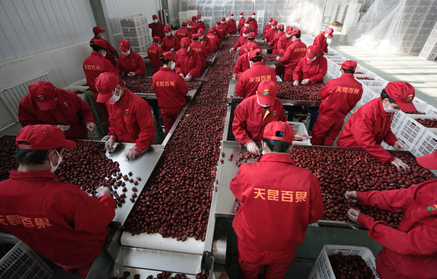 果業(yè):新疆天昆百果果業(yè)股份有限公司成立于2010年7月,公司注冊資金3000萬元,主要經(jīng)營水果制品加工、棗酒、棗醋制造。公司以“強(qiáng)企業(yè)、優(yōu)基地、重特色、創(chuàng)品牌”為思路,以建立“企業(yè)增效、員工增收、和諧穩(wěn)定和建設(shè)優(yōu)質(zhì)特色果品基地”為目標(biāo),實施標(biāo)準(zhǔn)化生產(chǎn),發(fā)展區(qū)域優(yōu)勢,促進(jìn)企業(yè)持續(xù)健康發(fā)展。