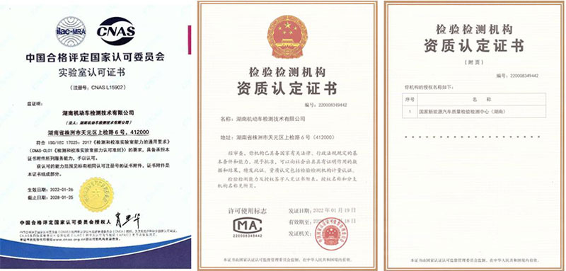 湖南機動車檢測技術有限公司(簡稱“湘汽檢”)是經(jīng)國家市場監(jiān)督管理總局資質(zhì)認定的、具有獨立法律地位的第三方檢驗檢測服務機構,是國家認證認可監(jiān)督管理委員會授權的國家新能源汽車質(zhì)量檢驗檢測中心(湖南),是中國合格評定國家認可委員會認可的實驗室。