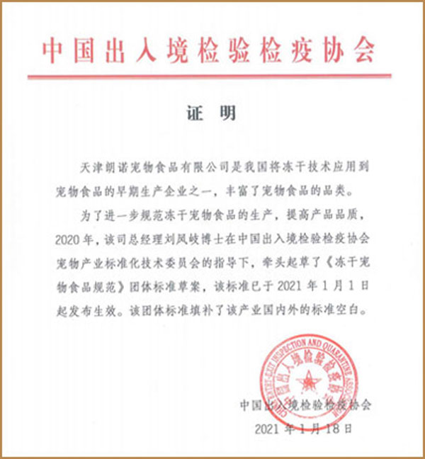 不僅在產(chǎn)品本身實現(xiàn)突破,2021年1月1日,在中國出入境檢驗檢疫協(xié)會寵物產(chǎn)業(yè)標準化技術(shù)委員會指導下,由朗諾董事長劉鳳岐博士領(lǐng)銜起草的《凍干寵物食品規(guī)范》正式頒布并實施。身為十三年出口企業(yè),朗諾相信,通過不斷完善的行業(yè)標準,越來越多真正優(yōu)秀的國內(nèi)品牌將更易獲得認同,中國寵物食品行業(yè)也將勢如破竹、蒸蒸日上。期待不久將來中國民族企業(yè)將全線崛起,以嶄新的面貌立于全球市場的潮流之中。