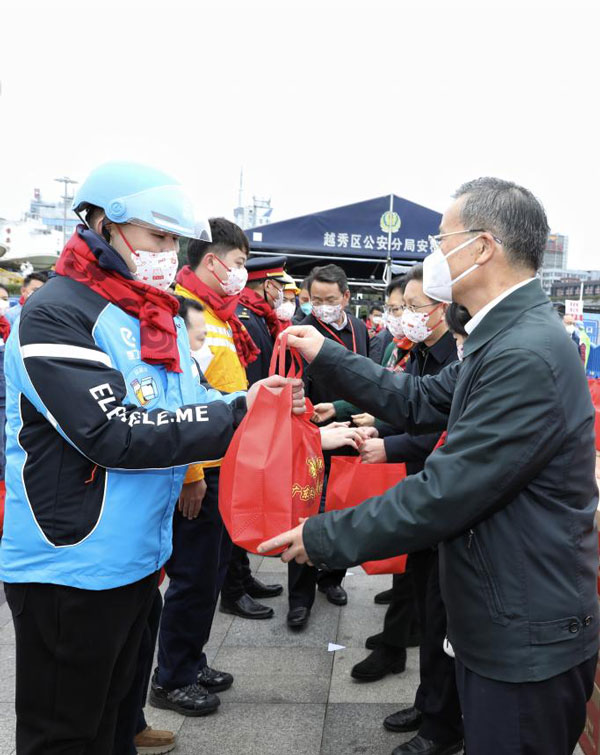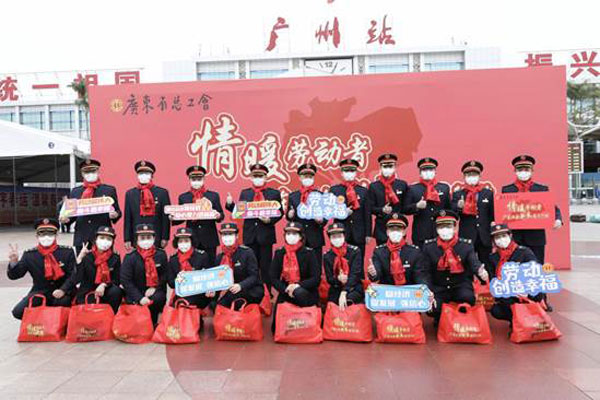 省人大常委會黨組成員、省總工會主席呂業(yè)升出席慰問活動并向廣大勞動者致以親切問候和新春祝福。省總工會黨組書記、常務(wù)副主席陳偉東,省總工會黨組成員、副主席杜玲,省總工會副主席(兼職)、廣州市人大常委會副主任、市總工會黨組書記、主席唐航浩等代表廣東工會向慰問現(xiàn)場的網(wǎng)約配送員、環(huán)衛(wèi)工人、建筑工人以及保障春運的保安員、醫(yī)務(wù)人員、公安干警、鐵路客運服務(wù)人員等職工代表送上新春慰問大禮包。廣州市總工會及越秀區(qū)總工會相關(guān)領(lǐng)導(dǎo)參加了慰問活動。