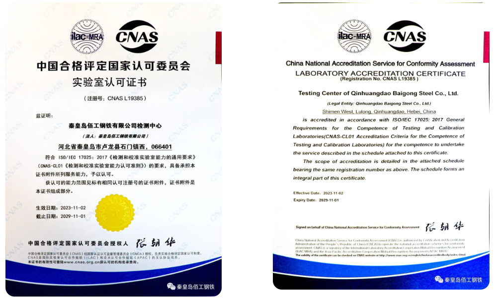 秦皇島佰工鋼鐵有限公司榮獲國家CNAS實(shí)驗(yàn)室認(rèn)可