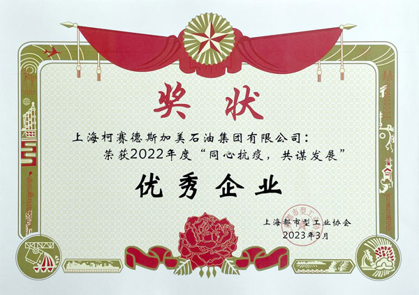 柯賽德斯加美石油集團被授予“2022年度‘同心抗疫,共謀發(fā)展’優(yōu)秀企業(yè)”稱號