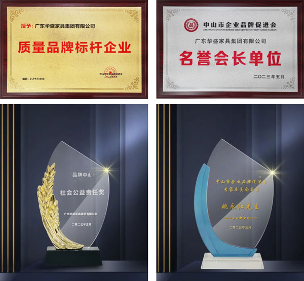 華盛家具集團(tuán)憑借卓越的品牌實(shí)力獲頒“質(zhì)量品牌標(biāo)桿企業(yè)”、“品牌中山社會(huì)公益責(zé)任獎(jiǎng)”、“名譽(yù)會(huì)長(zhǎng)單位”榮譽(yù)稱(chēng)號(hào),同時(shí),姚永紅董事長(zhǎng)獲聘“中山市企業(yè)品牌促進(jìn)會(huì)專(zhuān)家委員會(huì)委員”。