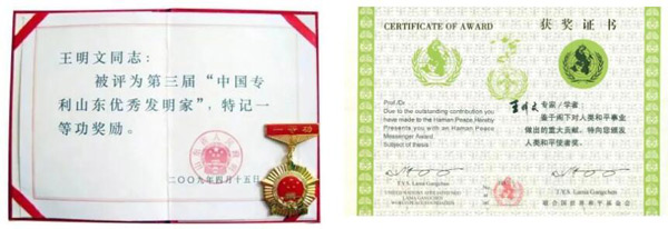 王明文先生2008年參加四川地震災(zāi)區(qū)公益慈善活動(dòng),榮獲聯(lián)合國(guó)世界和平基金會(huì)授予人類和平使者榮譽(yù)。