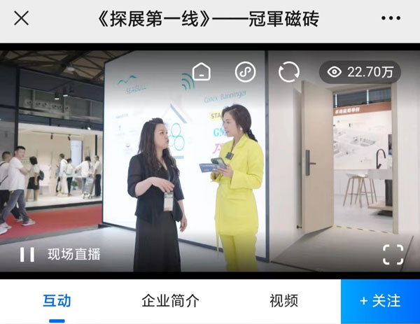線上經(jīng)濟時代,新媒體平臺各行其道,借此展會契機,冠軍磁磚攜手騰訊家居|貝殼頻道開展“探展第一線”線上直播活動,由設(shè)計好物·主理人、騰訊家居|貝殼頻道總裁 張英梅(YOYO)傾情出鏡,冠軍磁磚巖板中心副總經(jīng)理 唐小敏親自上陣。騰訊家居|貝殼平臺直播,“智造聯(lián)盟”、“冠軍磁磚官方”等賬號平臺同步轉(zhuǎn)播,截止直播結(jié)束,線上觀看量超230000人次。從展位帶逛、巖板應(yīng)用區(qū)展示到冠軍巖板優(yōu)勢分析解讀及品牌戰(zhàn)略布局,帶線上觀眾沉浸式觀展,直播間實時粉絲互動,線上氣氛火熱。