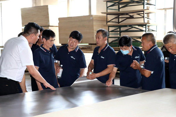 為增進(jìn)經(jīng)銷商對(duì)公司的了解,更好地發(fā)展合作關(guān)系,6月8日上午,隆飾板材山東濟(jì)南代理商周洪國(guó)周總組織當(dāng)?shù)匮b修公司、木工團(tuán)體、家具加工廠等合作伙伴一行,蒞臨隆飾板材總部進(jìn)行了參觀交流,通過(guò)近距離的實(shí)地參觀,深入了解隆飾板材的生產(chǎn)工藝流程。