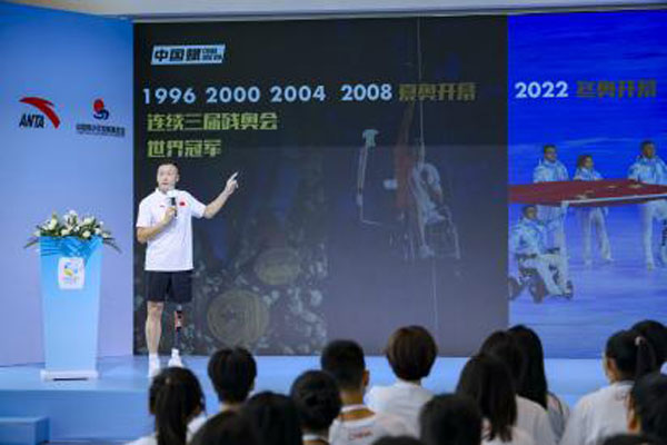 繼2022年安踏希望班研學(xué)營(yíng)舉辦“強(qiáng)國有我青年說”直播活動(dòng)后,“時(shí)代新青年最強(qiáng)音”作為2023年安踏希望班研學(xué)營(yíng)的重磅活動(dòng)于8月11日上午舉行,并進(jìn)行了全網(wǎng)直播。安踏集團(tuán)副總裁李玲、中國青少年發(fā)展基金會(huì)秘書長(zhǎng)萬學(xué)軍出席了活動(dòng)。三屆殘奧會(huì)金牌得主、中國殘奧委員會(huì)副主席侯斌也應(yīng)邀來到現(xiàn)場(chǎng),與同學(xué)們面對(duì)面交流,分享勵(lì)志故事,激勵(lì)學(xué)生們?cè)O(shè)立目標(biāo)、拓寬眼界、無所畏懼、勇攀高峰。他鼓勵(lì)同學(xué)們時(shí)談到“人生不設(shè)限,要面對(duì)自己的目標(biāo),相信相信的力量,努力到極致就可以實(shí)現(xiàn)它!”