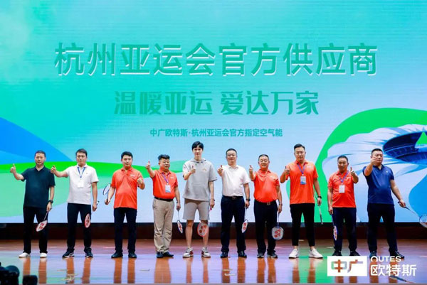 在杭州亞運(yùn)會(huì)倒計(jì)時(shí)50天的關(guān)鍵節(jié)點(diǎn),浙江中廣電器集團(tuán)股份有限公司副總裁王曉鵬以及8位中廣經(jīng)銷商代表,在鮑春來(lái)的指導(dǎo)下將彩虹羽毛球一齊發(fā)出,以這種新穎的方式共同開啟了“溫暖亞運(yùn) 愛(ài)達(dá)萬(wàn)家”中廣歐特斯第二季主題營(yíng)銷活動(dòng)。