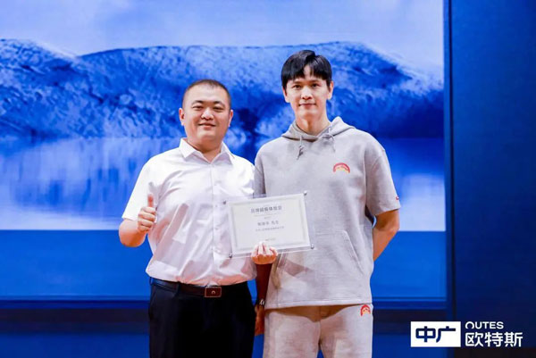 在現(xiàn)場(chǎng)嘉賓的共同見證下,浙江中廣電器集團(tuán)股份有限公司品牌總監(jiān)盧尚有為鮑春來(lái)現(xiàn)場(chǎng)頒發(fā)了“品牌超級(jí)體驗(yàn)官”授牌,正式宣告熱泵領(lǐng)軍者中廣歐特斯與羽毛球世界冠軍鮑春來(lái)強(qiáng)強(qiáng)聯(lián)手,開啟一段全新的熱愛(ài)之旅。同時(shí),為恭賀鮑春來(lái)喬遷新禧,中廣歐特斯還現(xiàn)場(chǎng)贈(zèng)送了一臺(tái)熱泵衣物護(hù)理機(jī)新品,為其帶來(lái)全新的衣物護(hù)理體驗(yàn)。