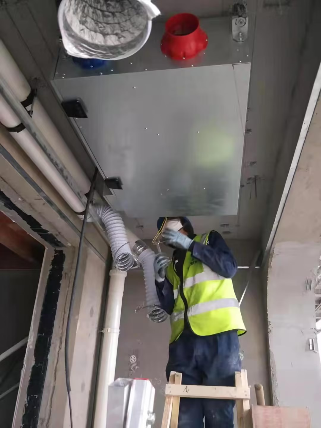 自2021年12月工程進(jìn)場施工至2023年3月調(diào)試完成第三方驗收通過,整個項目工期歷時15個月。在堅朗上海銷售區(qū)的大力支持下,格蘭斯柯新風(fēng)安裝團(tuán)隊與世紀(jì)古美項目部緊密配合,精心策劃組織、科學(xué)安排施工。