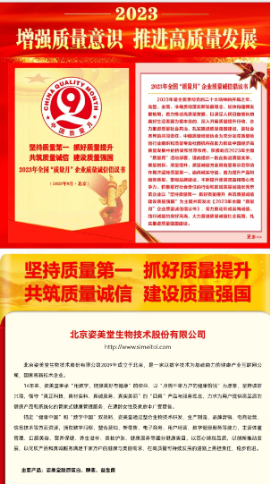 全國“質(zhì)量月”|姿美堂被授予“全國質(zhì)量誠信標(biāo)桿企業(yè)”四項殊榮姿美堂連續(xù)兩年榮獲全國質(zhì)量誠信標(biāo)桿企業(yè)