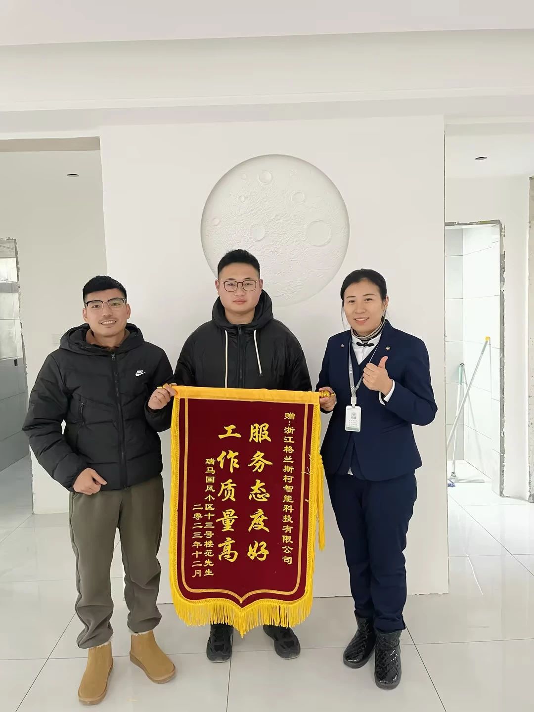 2023年12月,堅(jiān)朗格蘭斯柯新風(fēng)事業(yè)部又增添了一面錦旗--“服務(wù)態(tài)度好,工作質(zhì)量高”,錦旗由瑞馬國(guó)風(fēng)小區(qū)物業(yè)、十三號(hào)樓業(yè)主范先生共同贈(zèng)送,表達(dá)對(duì)格蘭斯柯新風(fēng)專業(yè)、貼心服務(wù)的感謝和認(rèn)可。