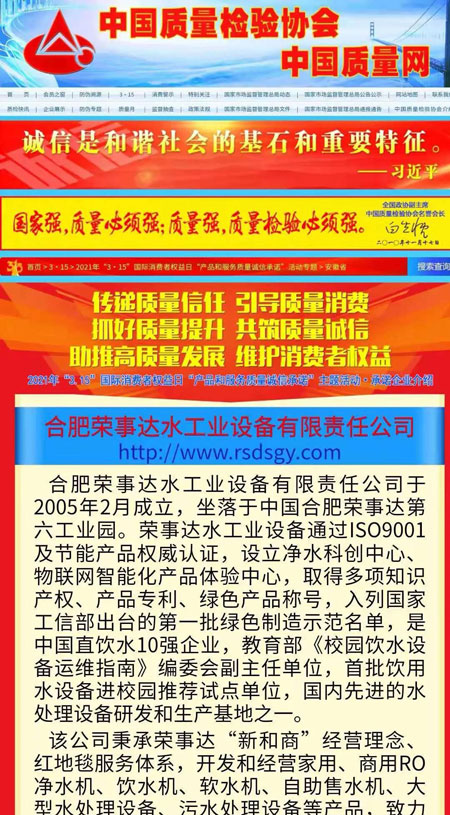 誠信315 | 熱烈祝賀榮事達(dá)榮獲“全國產(chǎn)品和服務(wù)質(zhì)量誠信示范企業(yè)”“全國質(zhì)量信得過產(chǎn)品”“全國凈水行業(yè)質(zhì)量領(lǐng)先品牌”等多項(xiàng)榮譽(yù)