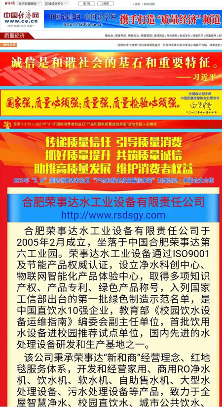 作為凈水行業(yè)領(lǐng)軍企業(yè),榮事達(dá)積極響應(yīng)中國質(zhì)量檢驗(yàn)協(xié)會(huì)“產(chǎn)品和服務(wù)質(zhì)量誠信承諾”號(hào)召,面向廣大用戶做出相關(guān)產(chǎn)品和服務(wù)質(zhì)量誠信承諾,體現(xiàn)了企業(yè)應(yīng)有的社會(huì)責(zé)任和擔(dān)當(dāng)。榮事達(dá)從中脫穎而出,一舉獲得“全國產(chǎn)品和服務(wù)質(zhì)量誠信示范企業(yè)”“全國質(zhì)量信得過產(chǎn)品”“全國凈水行業(yè)質(zhì)量領(lǐng)先品牌”“全國質(zhì)量誠信先進(jìn)企業(yè)”四項(xiàng)殊榮,相關(guān)承諾和獲獎(jiǎng)情況已在中國質(zhì)量網(wǎng)、中國經(jīng)濟(jì)網(wǎng)、中國消費(fèi)網(wǎng)在線發(fā)布。該項(xiàng)活動(dòng)也得到人民網(wǎng)、新華網(wǎng)、央視網(wǎng)、搜狐網(wǎng)等主流網(wǎng)絡(luò)媒體的報(bào)道。
