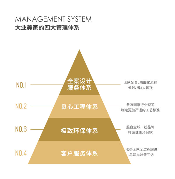 全案設(shè)計(jì)服務(wù)體系是指大業(yè)美家為客戶提供設(shè)計(jì)、施工、輔材、主材、產(chǎn)品軟裝一整條服務(wù)鏈,目的是讓客戶更輕松,不需要東奔西走,不需要擔(dān)心惶恐,只要找大業(yè)美家,就能夠解決裝修居住的所有問題。