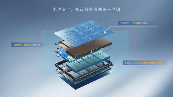 在電動車最為關(guān)鍵的電池安全方面,嵐圖采用5層PACK方案,首創(chuàng)的“琥珀電池”采用三維隔熱墻技術(shù),從結(jié)構(gòu)到智能,全方位保障電池安全。在全球首個電動車涉水后底部碰撞公開測試中,嵐圖汽車獲得中汽中心“未冒煙、未起火、未爆炸、未進水”的測試成績,樹立了三元鋰電池系統(tǒng)安全新標(biāo)桿。此外,嵐圖研發(fā)了云BMS系統(tǒng)和PDD毫秒級緊急斷電功能,將電池危險控制在萌芽階段。