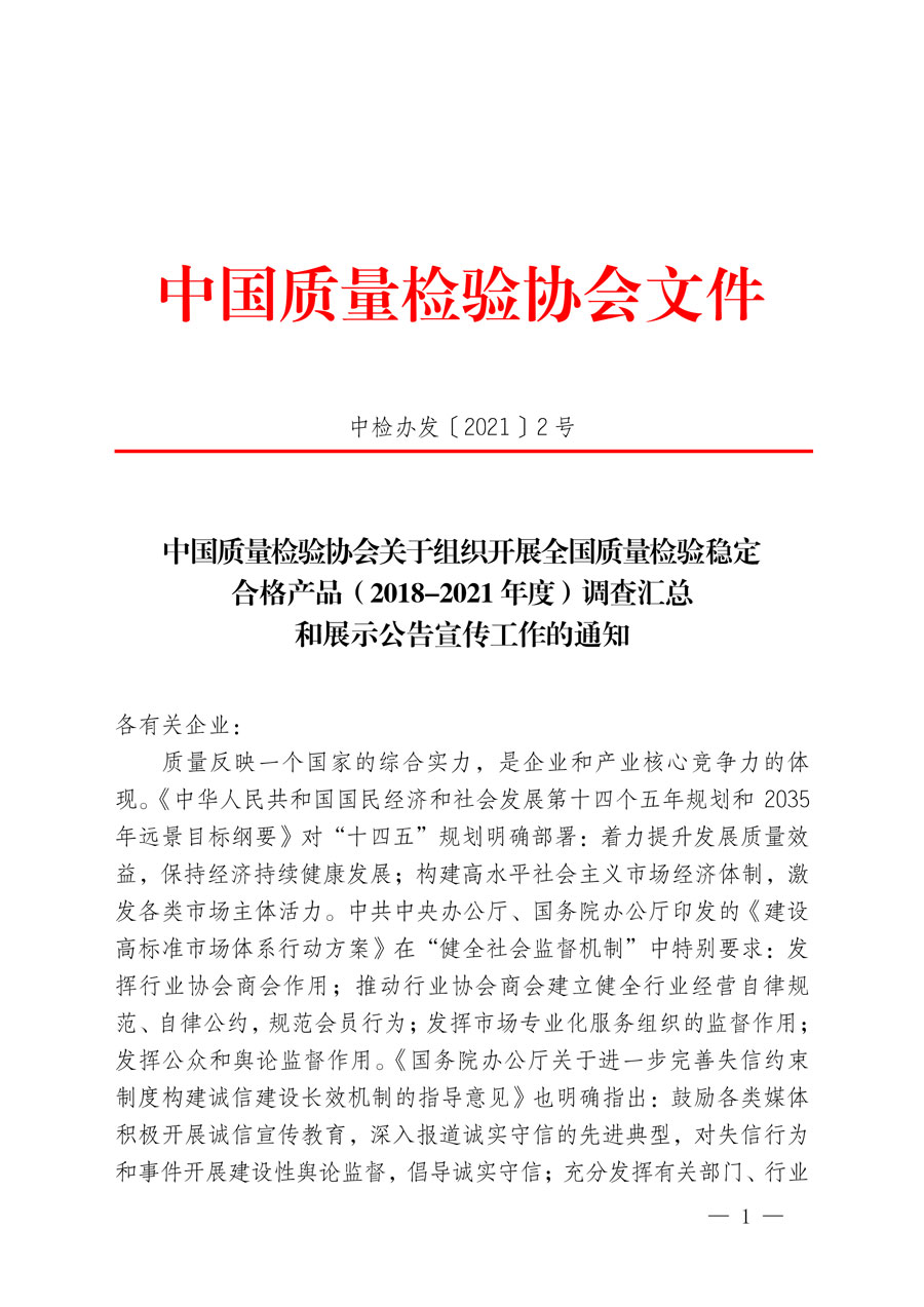 中國質量檢驗協(xié)會關于組織開展全國質量檢驗穩(wěn)定