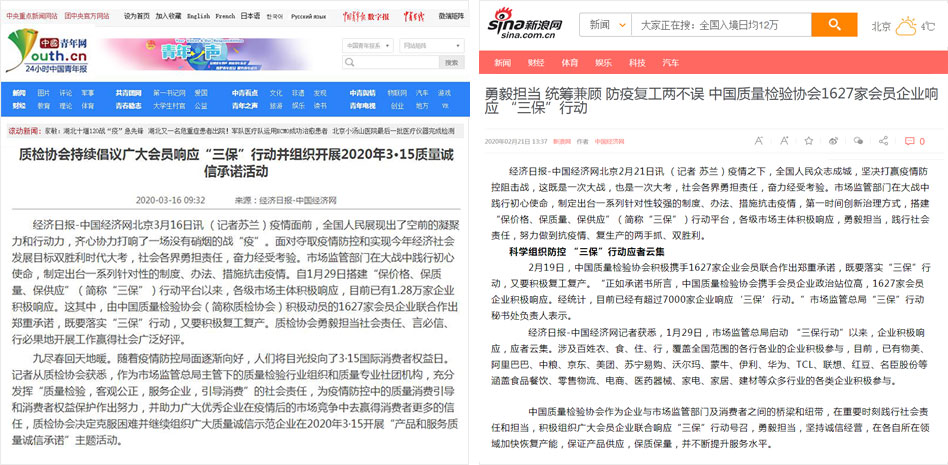 搜狐網(wǎng)《中國質(zhì)量檢驗協(xié)會攜手廣大會員企業(yè)響應(yīng)“三保”行動》