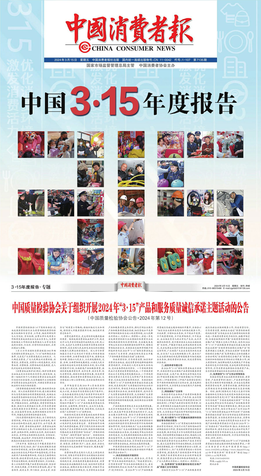 中國(guó)消費(fèi)者報(bào):中國(guó)質(zhì)量檢驗(yàn)協(xié)會(huì)關(guān)于組織開展2024年“3·15”產(chǎn)品和服務(wù)質(zhì)量誠(chéng)信承諾主題活動(dòng)的公告