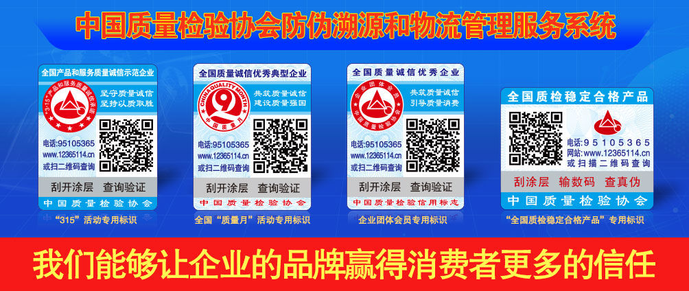 - “全國質(zhì)量檢驗(yàn)穩(wěn)定合格產(chǎn)品”調(diào)查匯總和“全國質(zhì)量信得過產(chǎn)品”及“全國行業(yè)質(zhì)量誠信領(lǐng)先品牌”與“全國質(zhì)量誠信先進(jìn)企業(yè)”公告展示